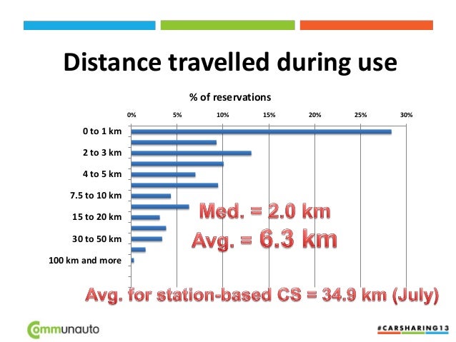 13. 13. Distance travelled during use 0% 5% 10% 15% 20% 25% 30% 0 to 1 km 2 to 3 km 4 to 5 km 7.5 to 10 km 15 to 20 km 30 to 50 km 100 km and more % of reservations