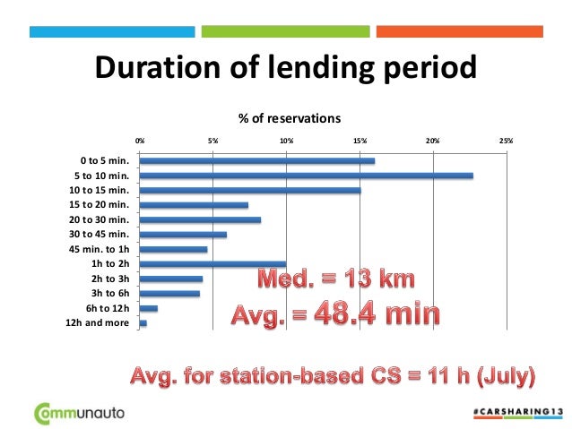 14. 14. Duration of lending period 0% 5% 10% 15% 20% 25% 0 to 5 min. 5 to 10 min. 10 to 15 min. 15 to 20 min. 20 to 30 min. 30 to 45 min. 45 min. to 1h 1h to 2h 2h to 3h 3h to 6h 6h to 12h 12h and more % of reservations