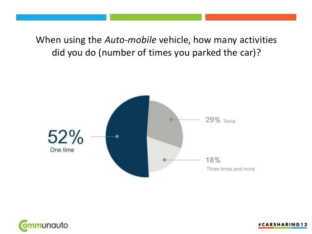 27. 27. GPS traces analysis • What happens during a reservation? How many trips? Where? Type Trip distance (km) Activity duration (min.) Trip chain length (km) Trip chain’s activity duration (min.) Trips / trip chain Urban 4.75 54.63 21.26 244.02 4.48 Interurban 36.54 69.74 139.58 333.38 3.82 With home location 7.40 49.07 41.29 283.21 5.58 Without home location 8.17 56.84 35.31 245.91 4.32 Urban only, with home location 3.93 49.17 21.91 272.46 5.57 Urban only, without home location 4.82 55.17 20.90 234.01 4.33 Global 8.11 56.22 36.91 255.91 4.55 Average 1st trip 11:46 to 11:53 2nd trip 11:59 to 12:24 3rd trip 13:52 to 14:13 4th trip 15:39 to 16:00 GPS event GPS timepoint 5th trip 16:22 to 16:26 A B C D E
