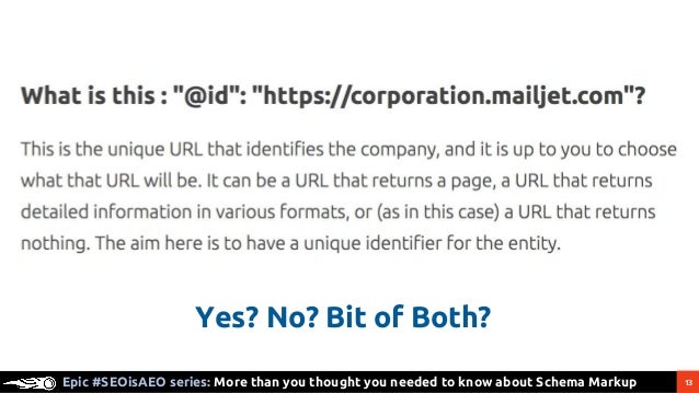 13. 13. 13Epic #SEOisAEO series: More than you thought you needed to know about Schema Markup Yes? No? Bit of Both?