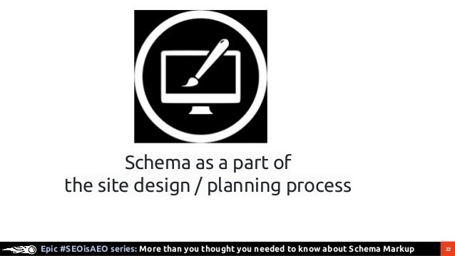 22. 22. 22Epic #SEOisAEO series: More than you thought you needed to know about Schema Markup Schema as a part of the site design / planning process