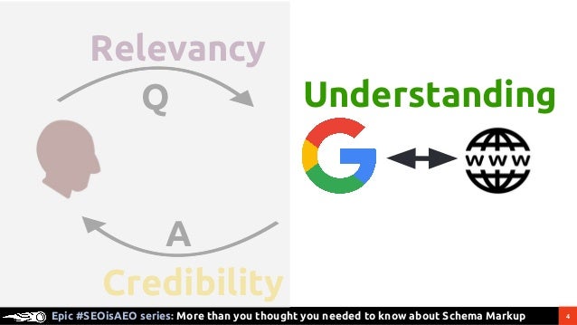 4. 4. 4Epic #SEOisAEO series: More than you thought you needed to know about Schema Markup A Q Relevancy Understanding Credibility