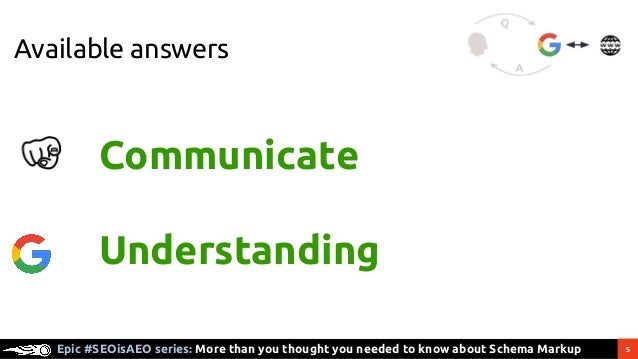 5. 5. 5Epic #SEOisAEO series: More than you thought you needed to know about Schema Markup Available answers Communicate Understanding