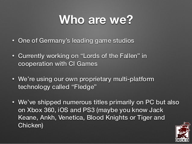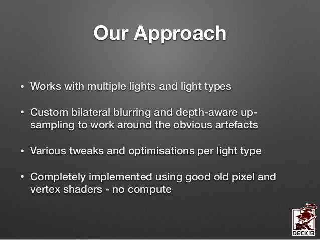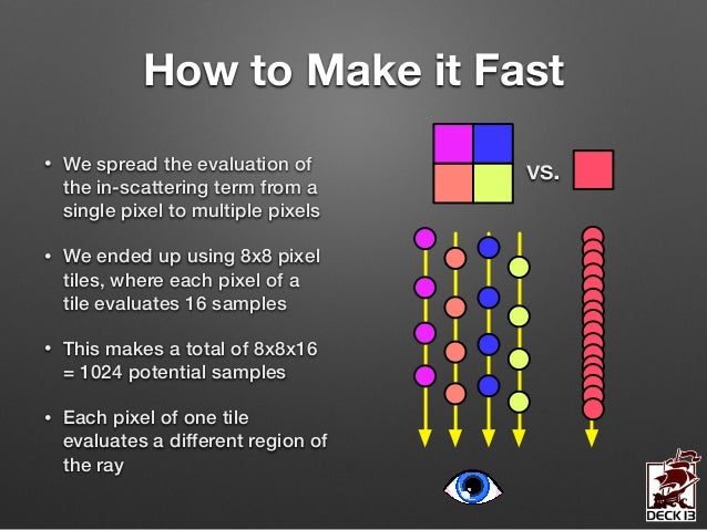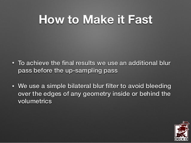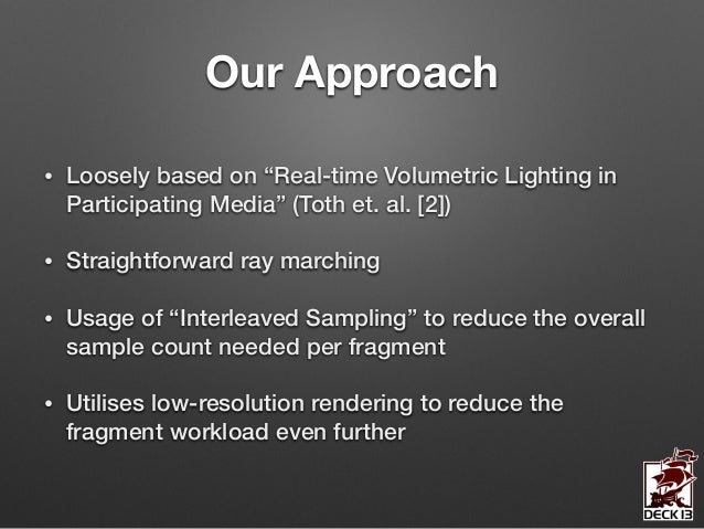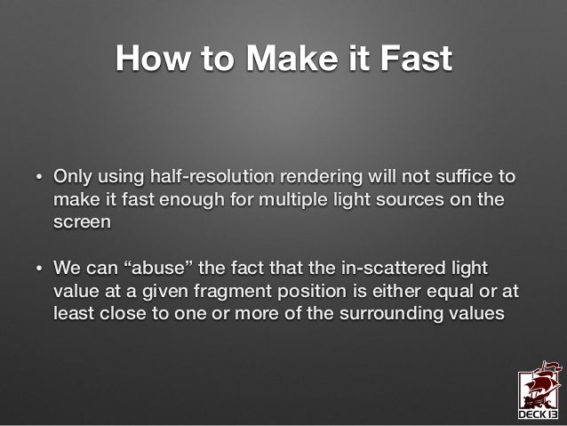 In this session I’m going to give you an in-depth insight into the design and the implementation of the volumetric lighting system we’ve developed for ‘Lords of the Fallen’. The system allows the simulation of countless volumetric lighting effects in parallel while still being a feasible solution on next-gen consoles.
