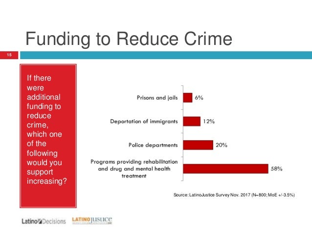 LatinoJustice developed a survey in collaboration with Latino Decisions that surveyed Latinxs on a range of criminal justice reform issues. This first national poll of Latinx opinions on criminal justice reform reveals that Latinos Are Concerned About Police Violence, Feel Less Safe Under Trump But Insist on Increased Spending on Rehabilitation Instead of More Funding for Prisons or Police