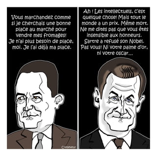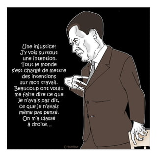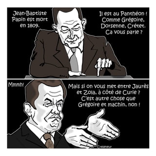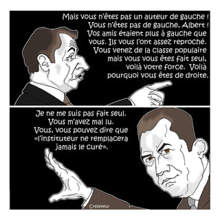 Le document traite du concept de Camus-Sarkozy et de l'événement au Panthéon, accompagné de dessins réalisés par Christian Creseveur. Il est signé par Mouloud Akkouche et Christian Creseveur et date du 10 juin 2014. Ce document aborde des thématiques liées à la philosophie et à l'héritage littéraire d'Albert Camus dans le contexte politique actuel.