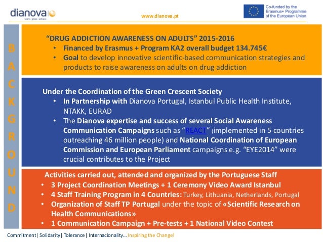 We are pleased to share that Dianova Portugal has been a speaker at the Side Event, the 16th march at 2.20-3:10pm, “DRUG AWARENESS ON ADULTS: A FIVE-STEP APPROACH TO PREVENTION" co-organized by the Yeşilay Türkiye Turkish Green Crescent, Dianova Portugal, EURAD, and NTAKK”, under the topic “DAWA 2015-2016: Health Communication Learning Lessons and Achievements from the Portuguese Perspective”, presenting the conclusions and achievements of the DAWA 2015-2016 transnational project on the Portuguese perspective!