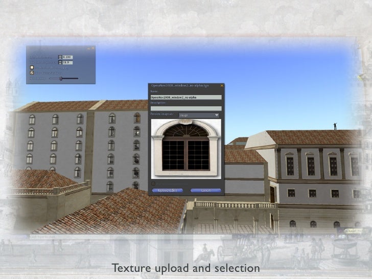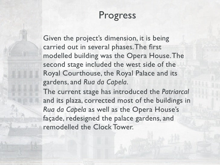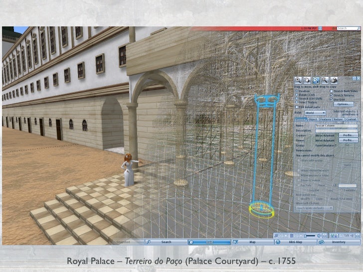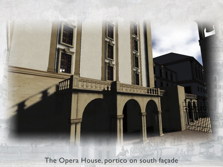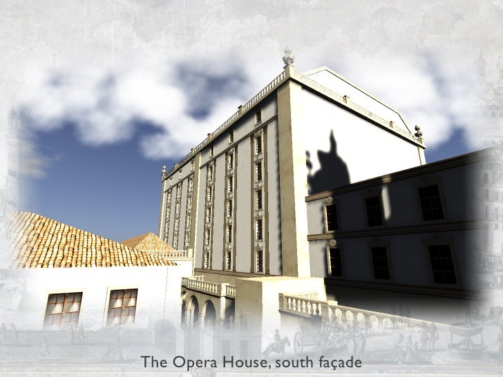 This presentation shows the current status of the "City and Spectacle" project, to be presented at the VSMM 2009 — 15th International Conference on Virtual Systems and Multimedia in Vienna, Austria (http://www.vsmm2009.org/). Changes include the "Patriarcal" church and piazza, new detail on the Opera House façades, a remodelation of Rua da Capela, new Palace Gardens, and a redesign of the Canevari Clock Tower. The video of the 3D models actually comes from OpenSimulator 0.6.6 and is very rude and amateurish. However, the superior capabilities of the modern Second Life viewers show how delightfully realistic the buildings can look like, thanks to the new lighting model that includes shadows.