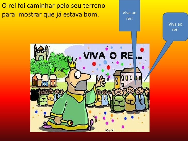 11. 11. O rei foi caminhar pelo seu terrenopara mostrar que já estava bom. Viva ao rei! Viva ao rei!