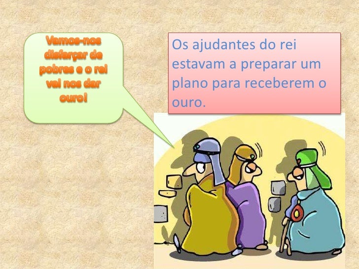 6. 6. Os ajudantes do reiestavam a preparar umplano para receberem oouro.