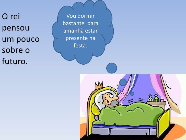 11. 11. O rei Vou dormir bastante parapensou amanhã estarum pouco presente na festa.sobre ofuturo.