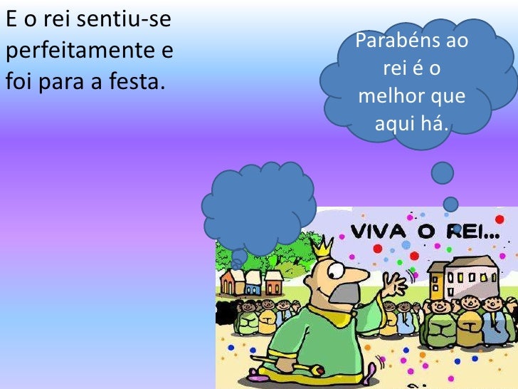 E o rei sentiu-seperfeitamente e     Parabéns ao                       rei é ofoi para a festa.                    melhor ...
