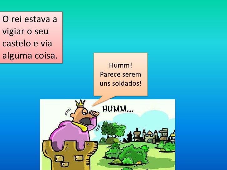 O rei estava avigiar o seucastelo e viaalguma coisa.                    Humm!                 Parece serem                ...