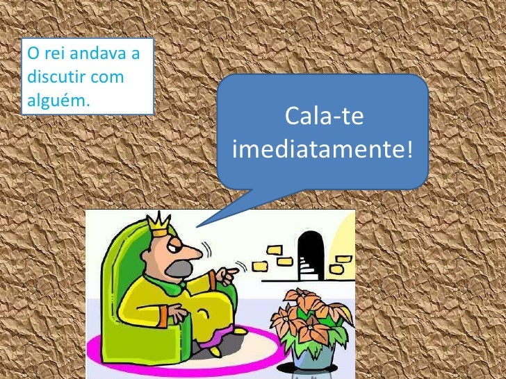 O rei andava adiscutir comalguém.                     Cala-te                 imediatamente!