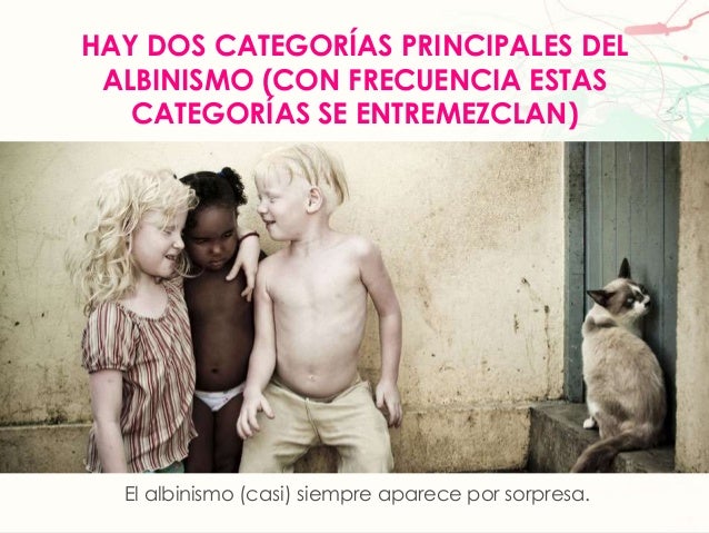 6. 6. HAY DOS CATEGORÍAS PRINCIPALES DELALBINISMO (CON FRECUENCIA ESTASCATEGORÍAS SE ENTREMEZCLAN)El albinismo (casi) siempre aparece por sorpresa.
