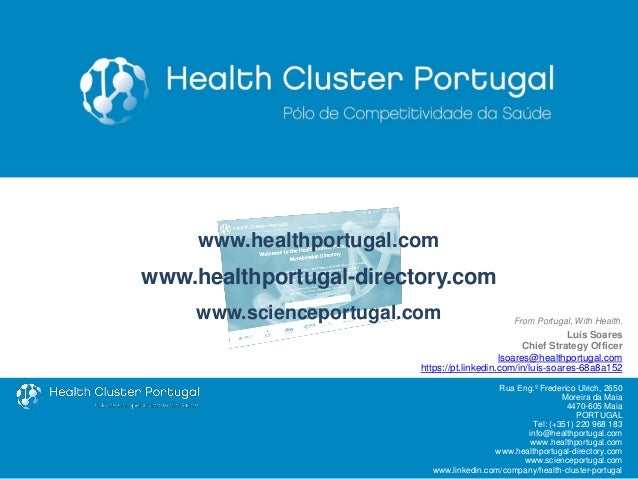 The Health sector is a prominent, fast-evolving sector in Portugal, which has experienced a remarkable evolution during the last couple of decades. I've prepared this brief presentation to give a very short overview of this success story.