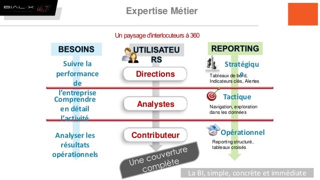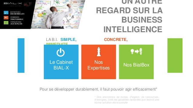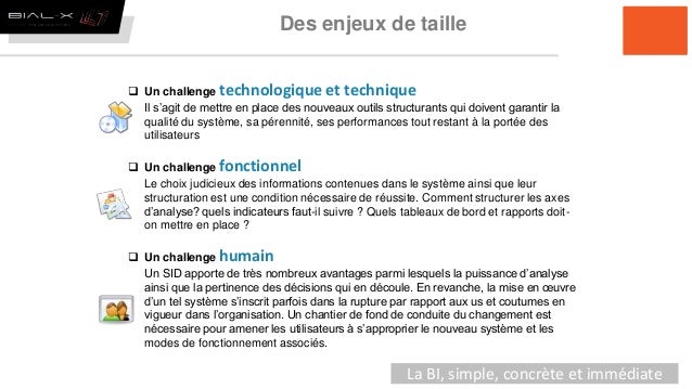 L'explosion des données (vitesse, volume, variété) requiert non seulement de nouvelles capacités de stockage, de traitement mais aussi et surtout un talent pour les transformer en informations utiles et insights activables pour les entreprises. La datavisualisation, ou l'art de concevoir des interfaces intuitives de visualisation et de manipulation, est un élément indispensable pour concevoir des tableaux de bords pertinents et réellement utiles aux décideurs. Le but ultime étant d'arriver à de l'analyse prédictive.