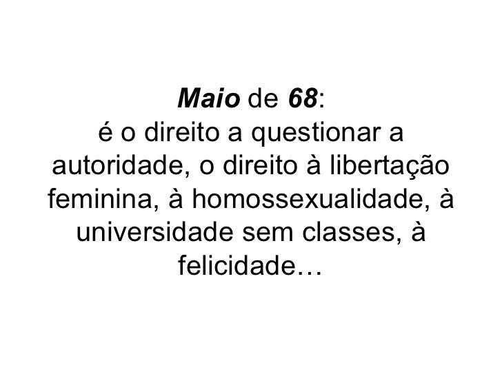6. 12. Maio de 68 : é o direito a questionar a autoridade, o direito à libertação feminina, à homossexualidade, à universidade sem classes, à felicidade…