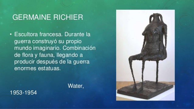 10. 10. GERMAINE RICHIER • Escultora francesa. Durante la guerra construyó su propio mundo imaginario. Combinación de flora y fauna, llegando a producir después de la guerra enormes estatuas. Water, 1953-1954