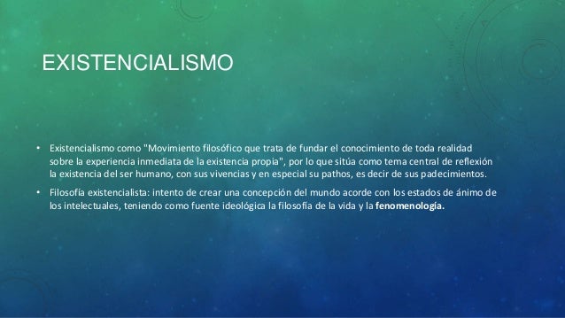 • Existencialismo como "Movimiento filosófico que trata de fundar el conocimiento de toda realidad
