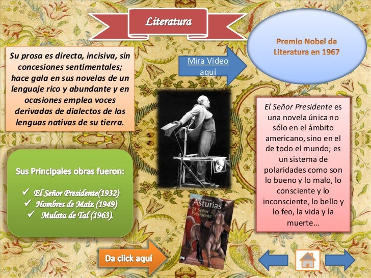 12. 12. Su prosa es directa, incisiva, sin Mira Video concesiones sentimentales; aquíhace gala en sus novelas de unlenguaje rico y abundante y en ocasiones emplea voces El Señor Presidente es derivadas de dialectos de las una novela única no lenguas nativas de su tierra. sólo en el ámbito americano, sino en el de todo el mundo; es un sistema de polaridades como son lo bueno y lo malo, lo consciente y lo inconsciente, lo bello y lo feo, la vida y la muerte…