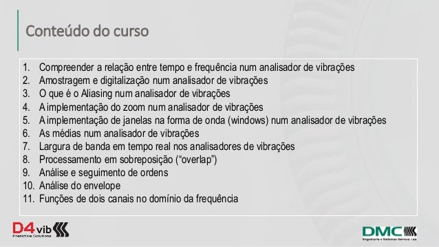 Curso destinado aos utilizadores de um analisador de vibrações. Neste curso faz-se uma introdução à análise digital de sinal utilizada pelos analisadores de vibrações e contem o essencial que se deve saber para os utilizar. A seguir encontram-se os links para todas as apresentações do Curso on line – Analisador de VIbrações – Modo de Funcionamento, nomeadamente: