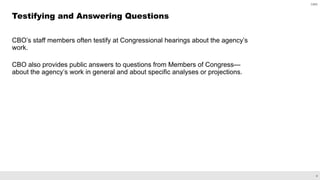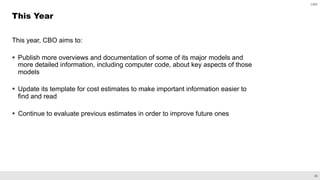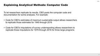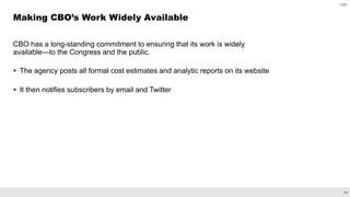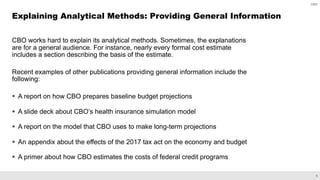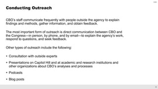 1. CBO seeks to promote a thorough understanding of its analyses by sharing information in an accessible, clear, and detailed manner.