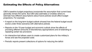 2. CBO wants to help people gauge how its estimates might change if policies or circumstances were different.