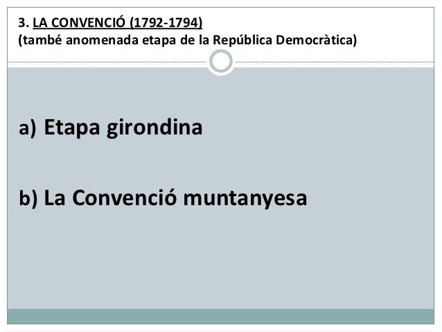 3. LA CONVENCIÓ (1792-1794)(també anomenada etapa de la República Democràtica)a) Etapa girondinab) La Convenció muntanyesa