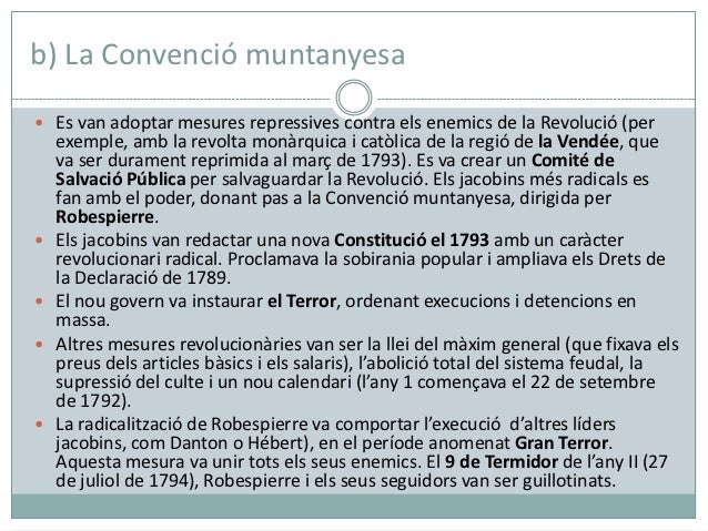 b) La Convenció muntanyesa Es van adoptar mesures repressives contra els enemics de la Revolució (per    exemple, amb la ...
