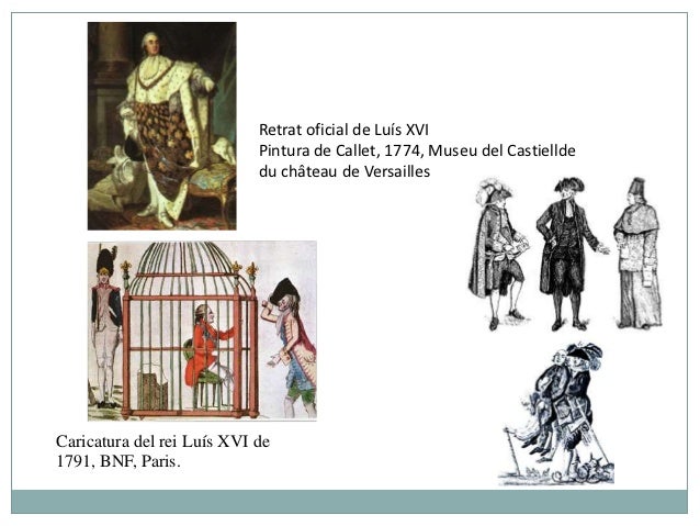 5. 5. Retrat oficial de Luís XVI Pintura de Callet, 1774, Museu del Castiellde du château de VersaillesCaricatura del rei Luís XVI de1791, BNF, Paris.