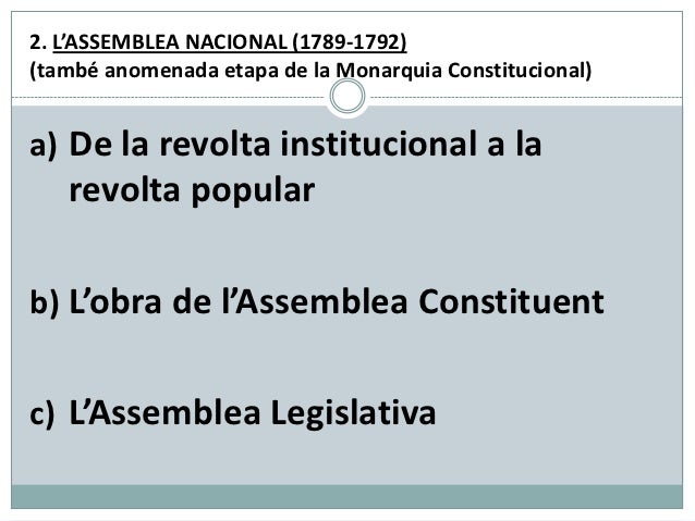 2. L’ASSEMBLEA NACIONAL (1789-1792)(també anomenada etapa de la Monarquia Constitucional)a) De la revolta institucional a ...