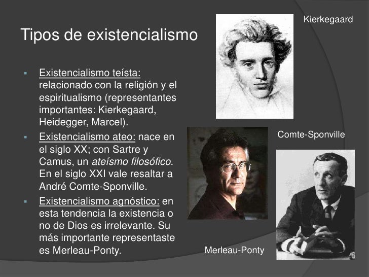 16. 16. Existencialismo agnóstico: en esta tendencia la existencia o no de Dios es irrelevante. Su más importante representaste es Merleau-Ponty. </li></ul>Comte-Sponville<br />Merleau-Ponty<br />