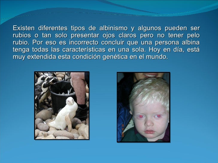 Es una condición genética en la que hayuna      ausencia      congénita      depigmentación (melanina) de ojos, piely pelo...