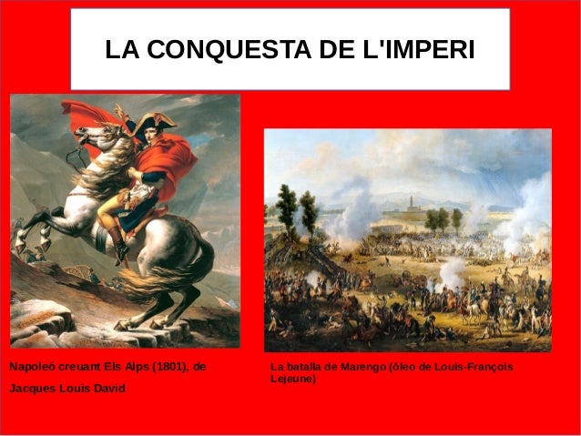 6. 6. LA CONQUESTA DE L'IMPERI Napoleó creuant Els Alps (1801), de Jacques Louis David La batalla de Marengo (óleo de Louis-François Lejeune)