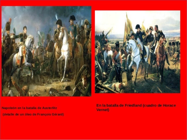 7. 7. Napoleón en la batalla de Austerlitz (detalle de un óleo de François Gérard) En la batalla de Friedland (cuadro de Horace Vernet)