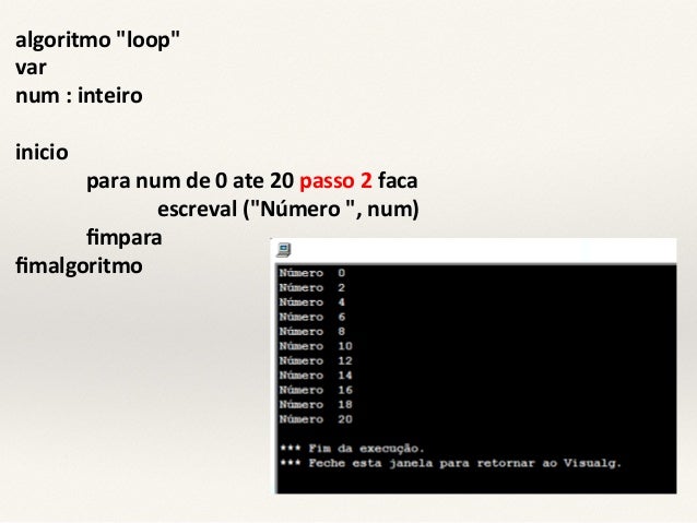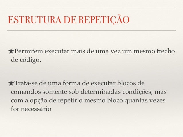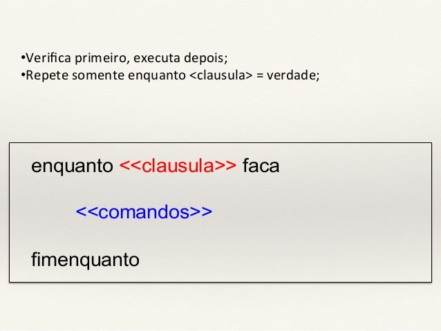 Neste slide estaremos falando sobre Estrutura de Repetição em Pseudocódigo ou Portugol utilizando características e regras da programação na ferramenta Visualg.[Aula para curso técnico]