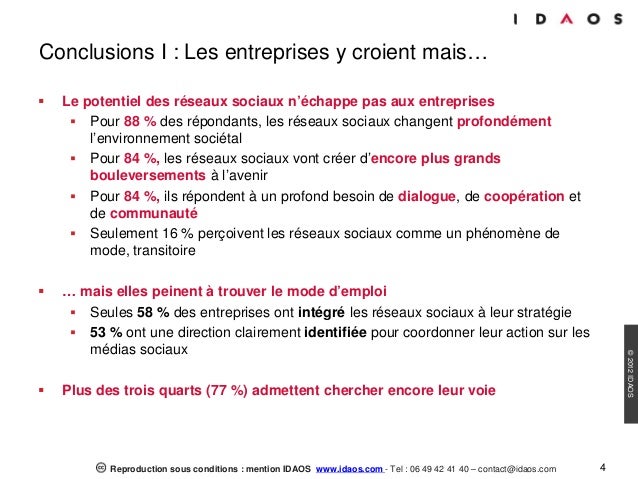Les résultats montrent que si ces dirigeants comprennent l'importance des réseaux sociaux, ils sont toutefois conscients du chemin qu'il leur reste à parcourir pour les intégrer réellement à tous les échelons de la stratégie de l’entreprise.