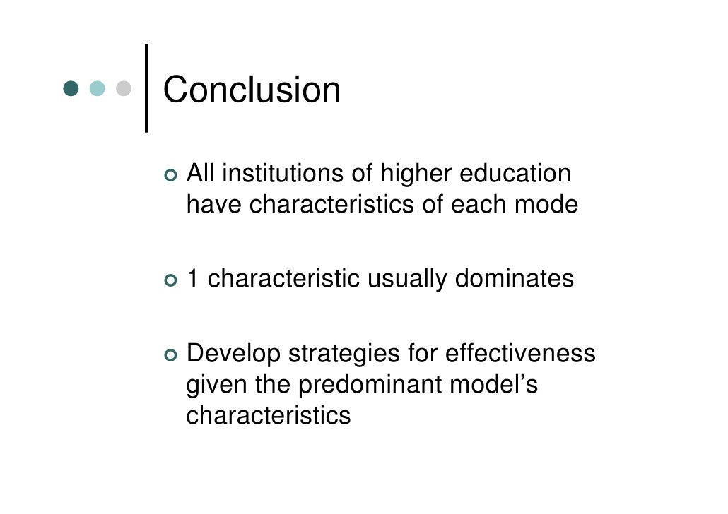 Conclusion   All institutions of higher education    have characteristics of each mode   1 characteristic usually domina...