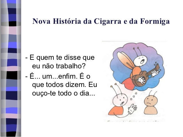 6. 6. Nova História da Cigarra e da Formiga- E quem te disse que eu não trabalho?- É... um...enfim. É o que todos dizem. Eu ouço-te todo o dia...