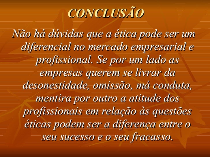 18. 36. CONCLUSÃO <ul><li>Não há dúvidas que a ética pode ser um diferencial no mercado empresarial e profissional. Se por um lado as empresas querem se livrar da desonestidade, omissão, má conduta, mentira por outro a atitude dos profissionais em relação às questões éticas podem ser a diferença entre o seu sucesso e o seu fracasso. </li></ul>