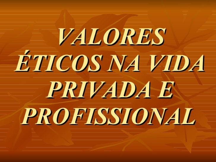 6. 6. VALORES ÉTICOS NA VIDA PRIVADA E PROFISSIONAL