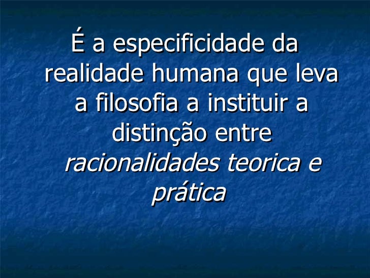 9. 9. <ul><li>É a especificidade da realidade humana que leva a filosofia a instituir a distinção entre racionalidades teorica e prática </li></ul>