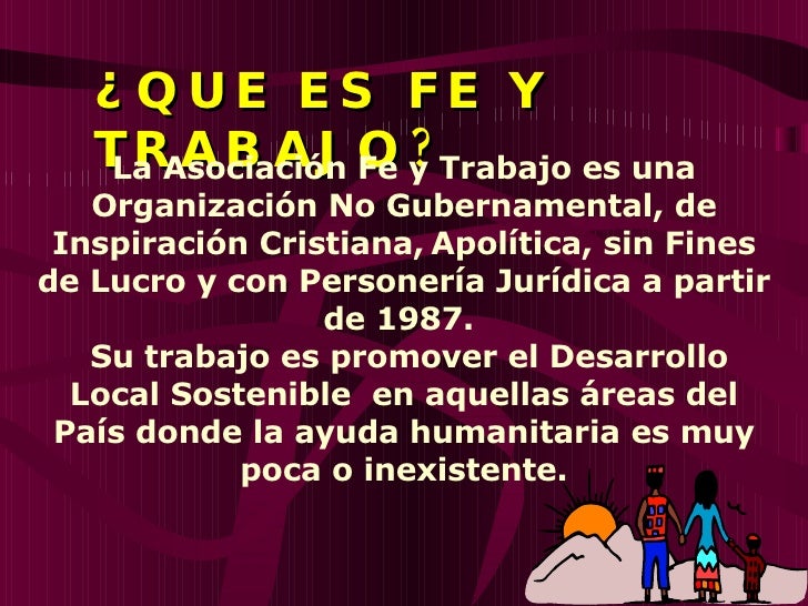Mision, vision, objetivos estrategicos del ser y hacer de Asociacion Fe y Trabajo.
