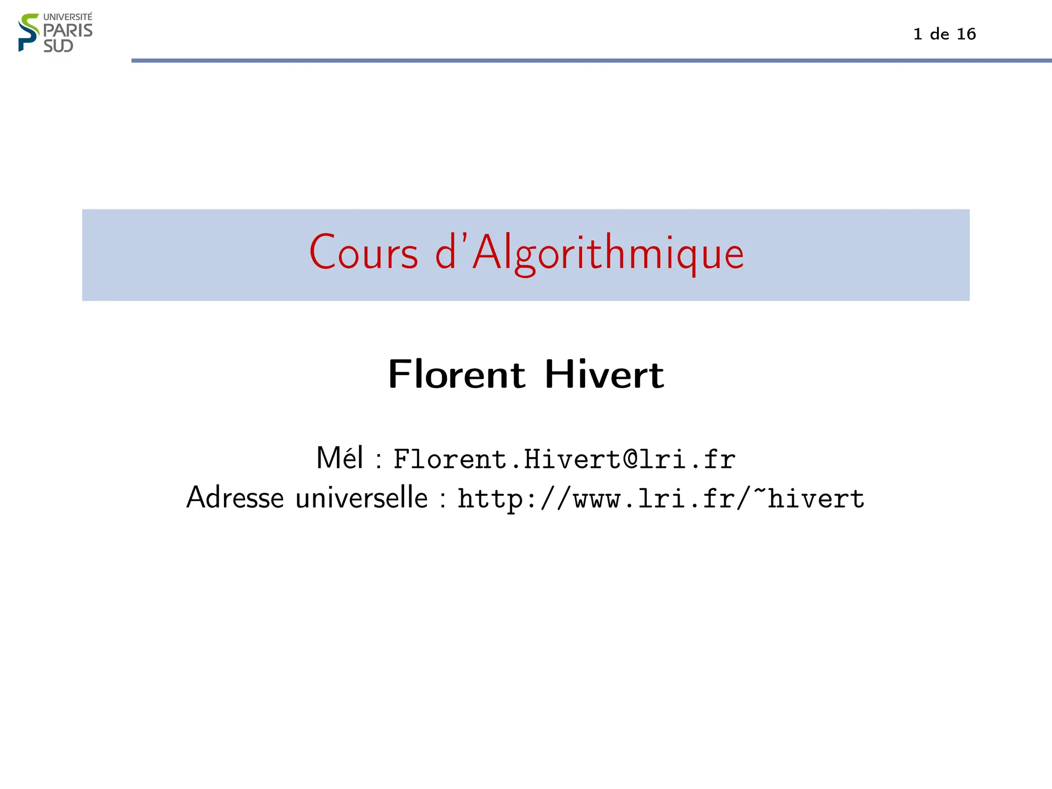 Ce document présente un cours d'algorithmique de 25 heures, incluant des travaux dirigés et un examen final, portant sur des thèmes tels que les algorithmes, la programmation et la complexité. Les objectifs incluent la conception d'algorithmes simples et l'analyse de leur performance, ainsi que l'utilisation de structures de données appropriées. Il fournit également des références bibliographiques pour approfondir le sujet.