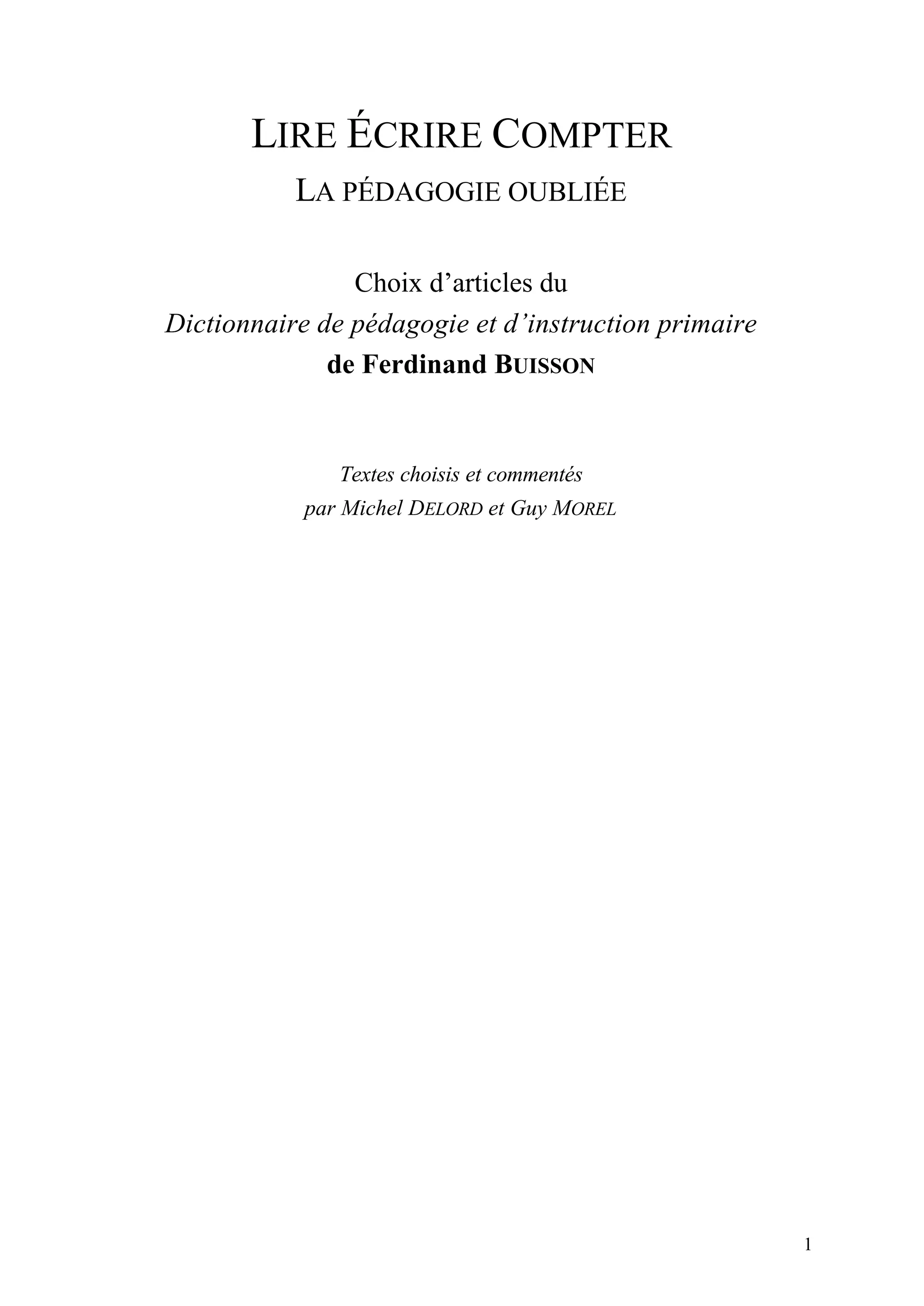 Le document examine l'importance historique et pédagogique du 'Dictionnaire de pédagogie et d'instruction primaire' de Ferdinand Buisson, qui vise à transformer l'éducation en France à la fin du XIXe siècle. Il critique les méthodes d'enseignement traditionnelles tout en proposant de nouvelles approches respectueuses de l'intelligence de l'enfant, insistant sur la nécessité d'une éducation inclusive et rationnelle. Malgré son impact significatif, l'œuvre de Buisson a été largement oubliée à cause de préjugés et de simplifications contemporains sur l'éducation de cette époque.