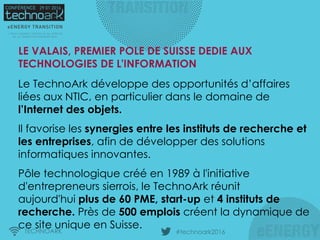 Le TechnoArk, créé en 1989, favorise les synergies entre les instituts de recherche et les entreprises dans le domaine des technologies de l'information, en particulier l'internet des objets, réunissant plus de 60 PME et start-ups. Il offre des services tels que l'incubation, l'accélération et le soutien à l'innovation, contribuant significativement à l'économie régionale avec près de 500 emplois. Le projet EEnergy, financé par l'Union européenne, vise à concevoir un écosystème informatique innovant pour encourager des modes de vie économes en énergie.