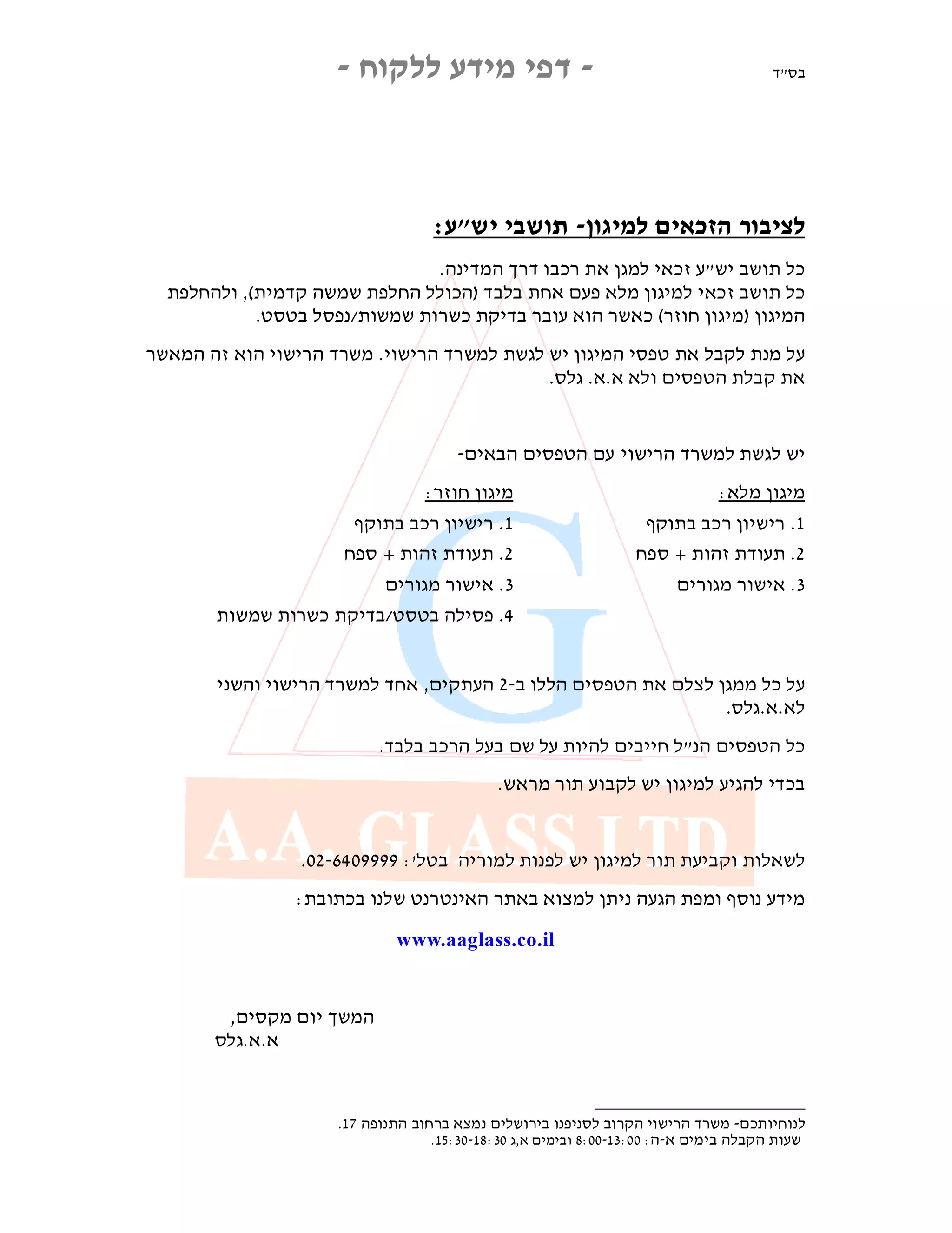 Le document contient des informations de contact pour AAGlass, y compris des heures d'ouverture et des numéros de téléphone. Il mentionne aussi une adresse web pour plus de détails. Les heures d'opération sont spécifiées pour en semaine et le samedi.