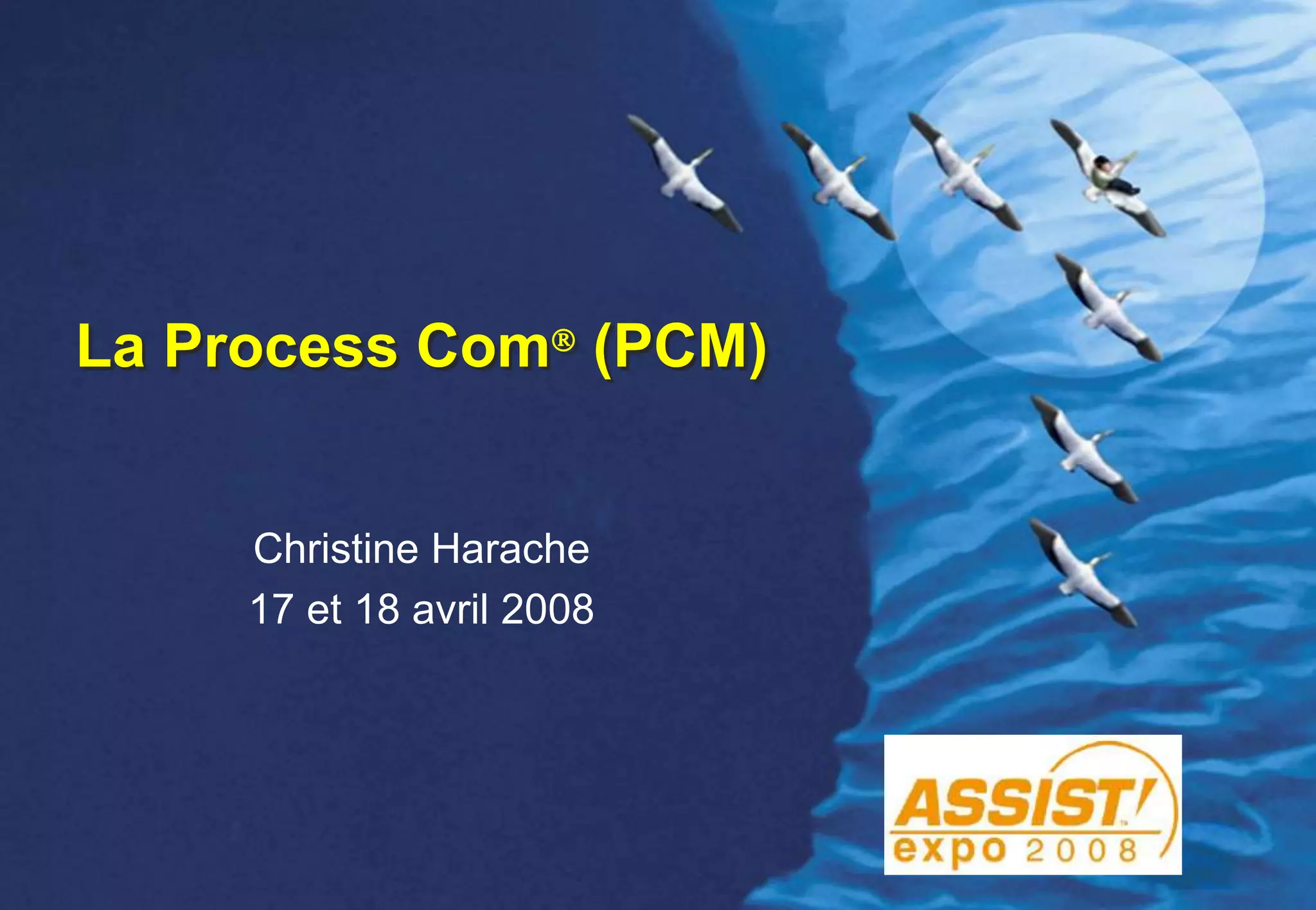 La Process Communication Model (PCM), développée par Christine Harache, se concentre sur l'importance du style de communication et de la compréhension des types de personnalité pour améliorer les interactions. Elle identifie six types de personnalités (empathique, travaillomane, persévérant, rebelle, promoteur, rêveur) et des stratégies pour adapter sa communication en fonction de ces types. Le document propose également des exemples de messages adaptés à chaque type pour favoriser une communication efficace.