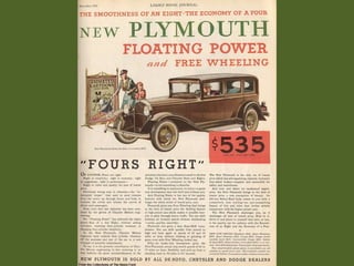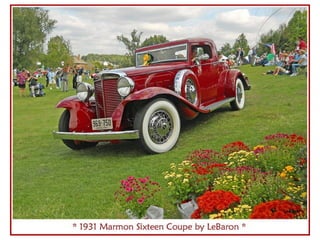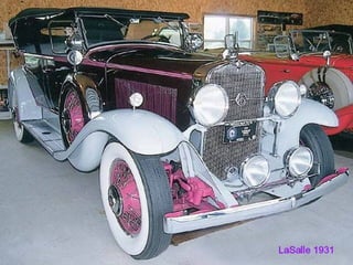 Le document mentionne plusieurs modèles de voitures de 1931, y compris la Ford, la Peugeot 201 et la Chrysler Impérial. Il évoque également des événements marquants de l'année, comme l'expédition arctique et la sortie de 'Dracula' par Universal Studios. Enfin, des références au Bugatti Royale et à d'autres marques sont incluses.